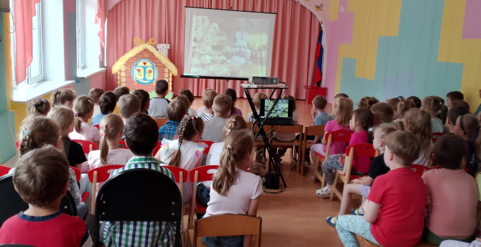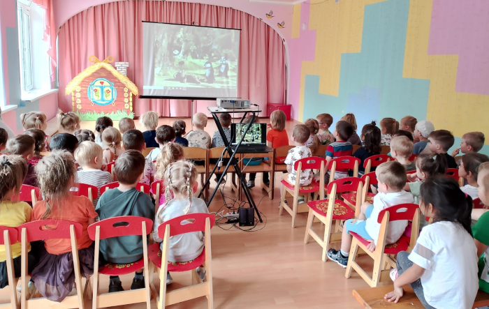 В летние дождливые дни ребятам устраивают показ тематических, обучающих мультфильмов. В этот раз дети с удовольствием посмотрели два мультфильма советского времени: «Топчумба» и «Кто получит приз». Сказочные герои показали ребятам, как надо заниматься спортом, что нужно уметь и знать, чтобы быть ловкими, смелыми, здоровыми, честными. Ребята сопереживали героям и были очень рады, что победила дружба, честность, смелость и ловкость.